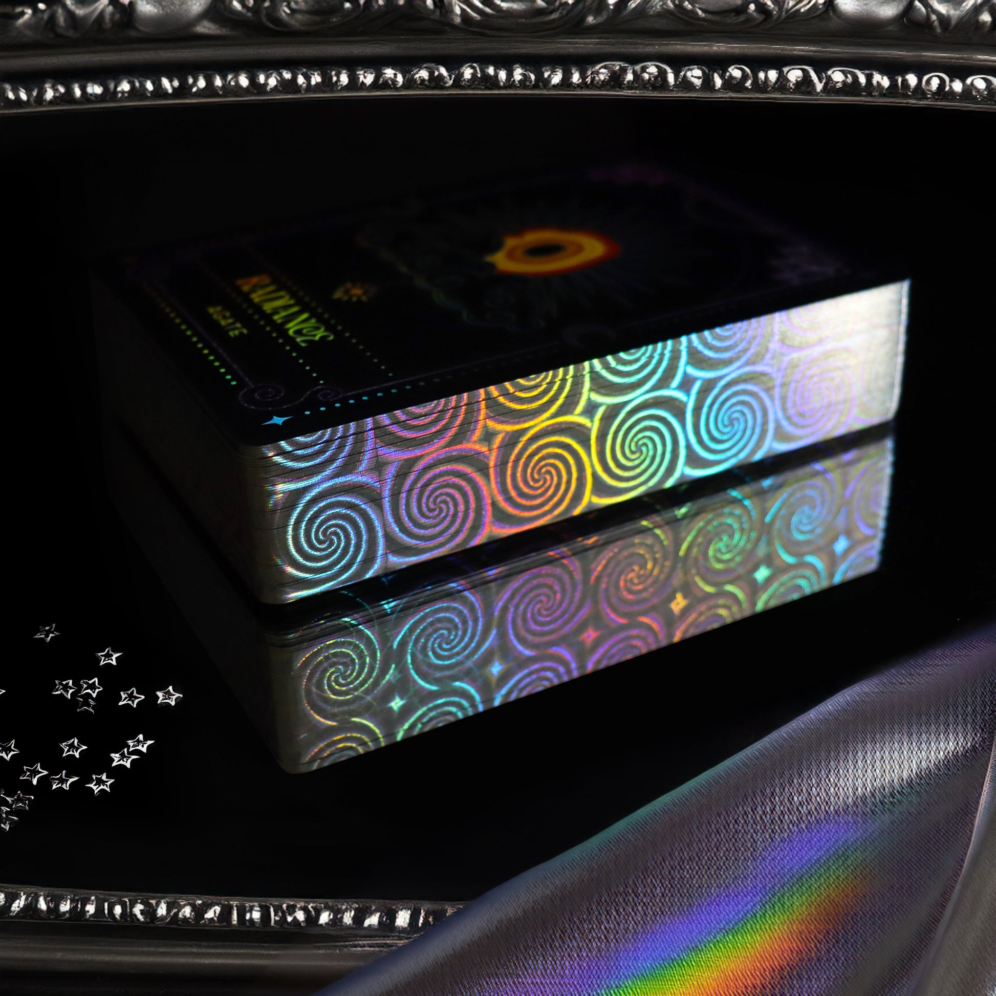 - cards are matte finish with glittery purple and silver holographic rainbow foil print and a silver holographic rainbow portal edge*