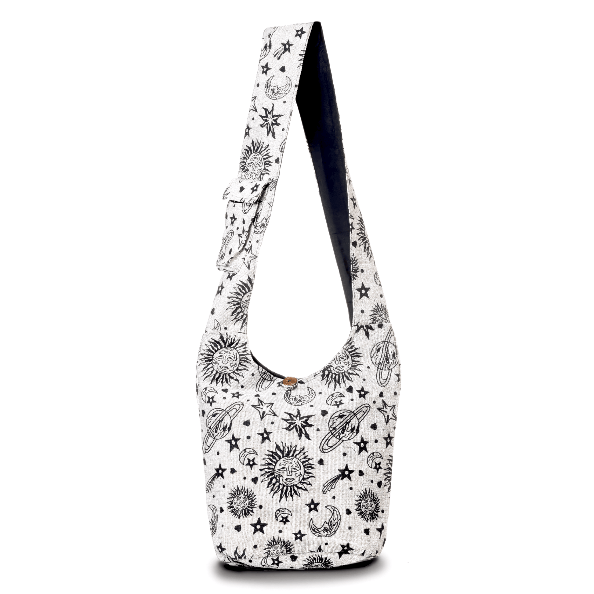 Kathmandu Collection Celestial Print Hobo Bag - Handmade 100% Cotton Shoulder Bag from Nepal | Moon and Star Boho Design with Inner Pocket