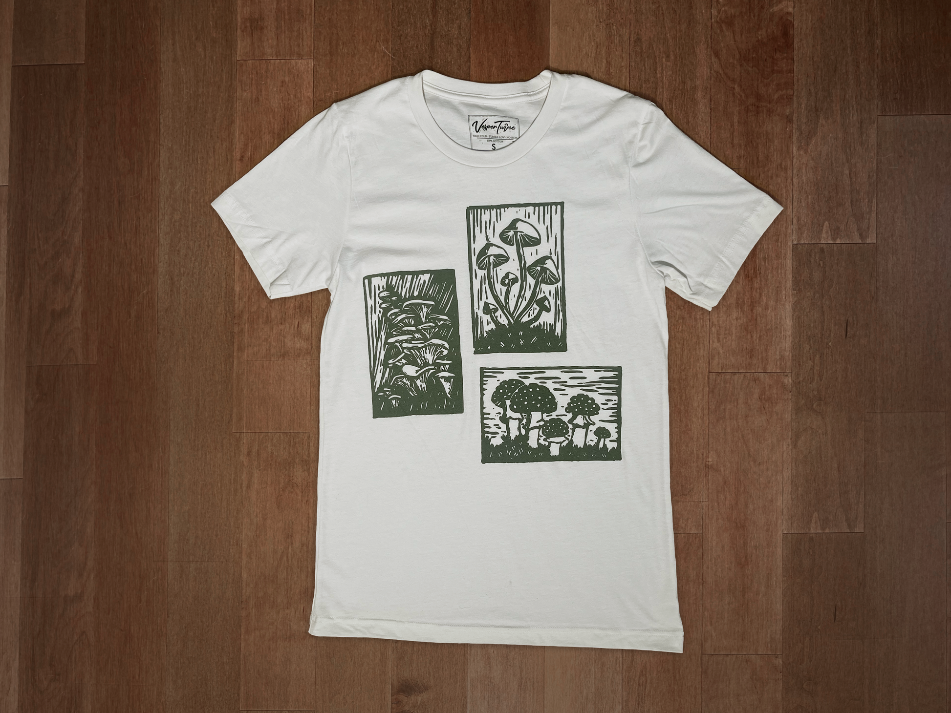 Whether you're looking to add my block-printed or screen-printed shirts to your wardrobe, all designs are printed on 100% cotton unisex t-shirts that have been pre-shrunk for your convenience.