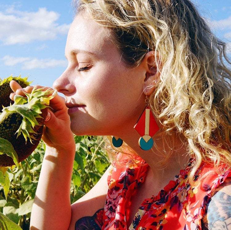Inspired by Ocean Drive in Miami Beach, these Primary Color Art Deco earrings are sure to make a statement. Because these earrings are made of wood they are extremely light and won't weigh your earlobes down.